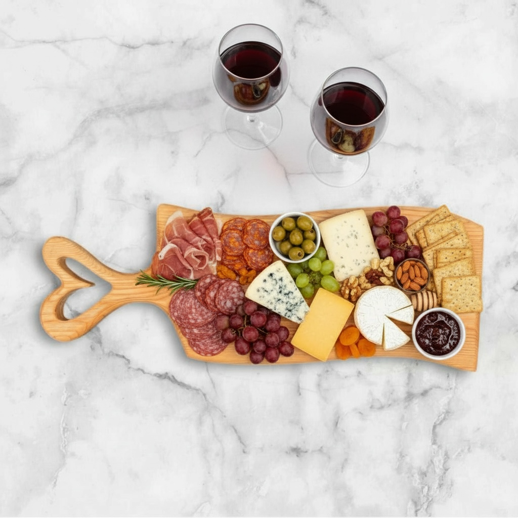 This Ash charcuterie board has a warm, natural look with a live edge that keeps a bit of the tree’s original character. Milled and crafted by our company. It measures 23” x 8” x .75” and includes a hand-cut heart handle that gives it a little extra charm. Every crack and natural feature was fully filled so the surface stays smooth and easy to clean—no spots for food or bacteria to hide. Finished with 100% food-safe mineral oil, it’s ready for serving or display.