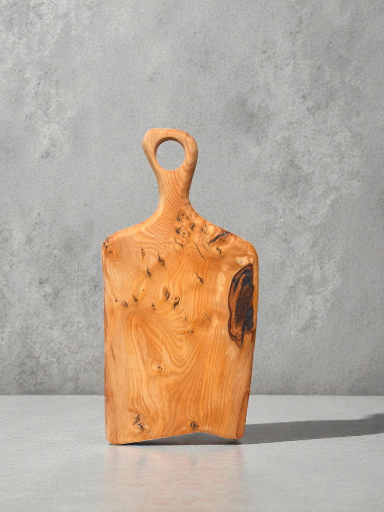 This 16” × 7.5” × .75” Ash board has a lot of natural character, highlighted by its live edge and bold black epoxy fills. The contrast brings out the grain while keeping the surface smooth and easy to clean. Finished with 100% food-safe mineral oil, it’s a compact piece that works well for serving, staging, or everyday use. Crafted from urban-salvaged Oregon ash.