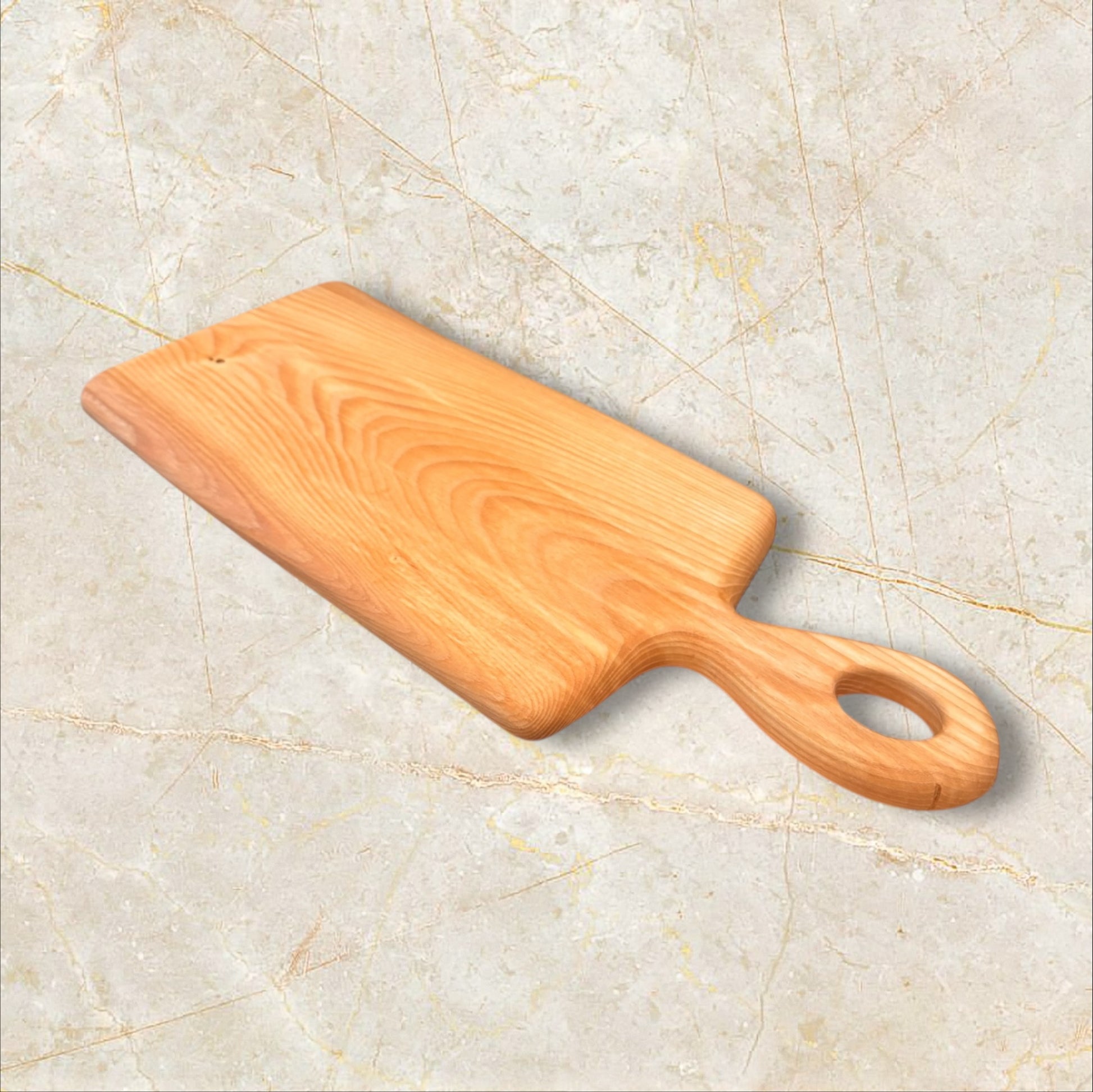 This 19.5” × 8” × .75” Ash charcuterie board keeps a natural live edge that shows off the tree’s original character. The surface is smooth and practical, with all cracks filled so there are no spots for food or moisture to collect. Finished with 100% food-safe mineral oil, it’s a solid board for serving, staging, or everyday use. Handcrafted from urban-salvaged Oregon ash that we milled ourselves.